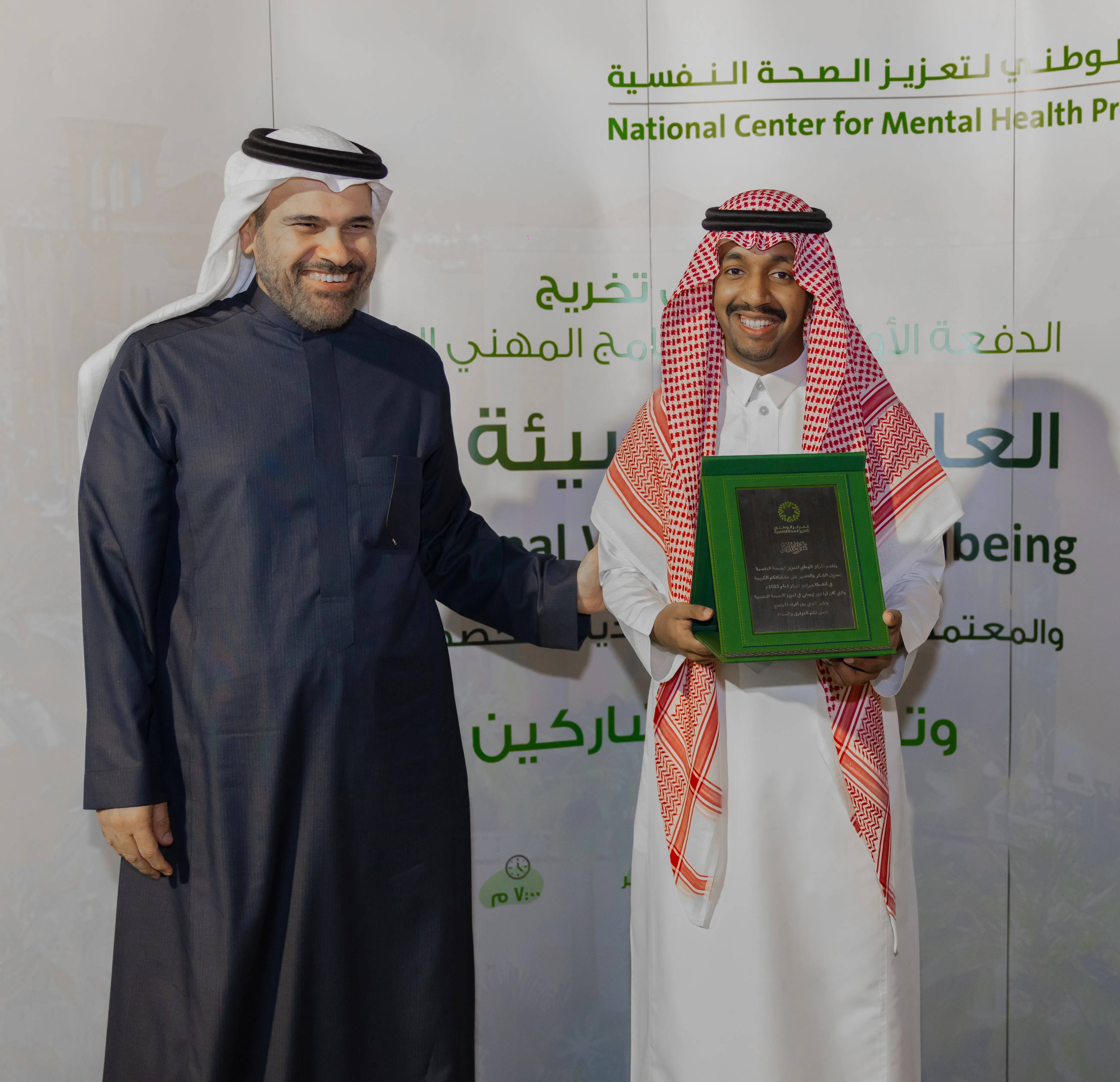 اختتم المركز الوطني لتعزيز الصحة النفسية اللقاء الختامي لبرنامج (العافية في بيئة العمل (، البرنامج المهني المتخصص والمعتمد من الهيئة السعودية للتخصصات الصحية، وذلك بحضور سعادة وكيل الوزارة للخدمات الصحية الدكتور محمد بن عبد العالي، ومدير عام المركز الوطني لتعزيز الصحة النفسية الدكتور عبد الحميد بن عبد الله الحبيب، وبمشاركة عدد من القيادات الصحية والمتخصصين والمهتمين بمجال الصحة النفسية وبيئات العمل.