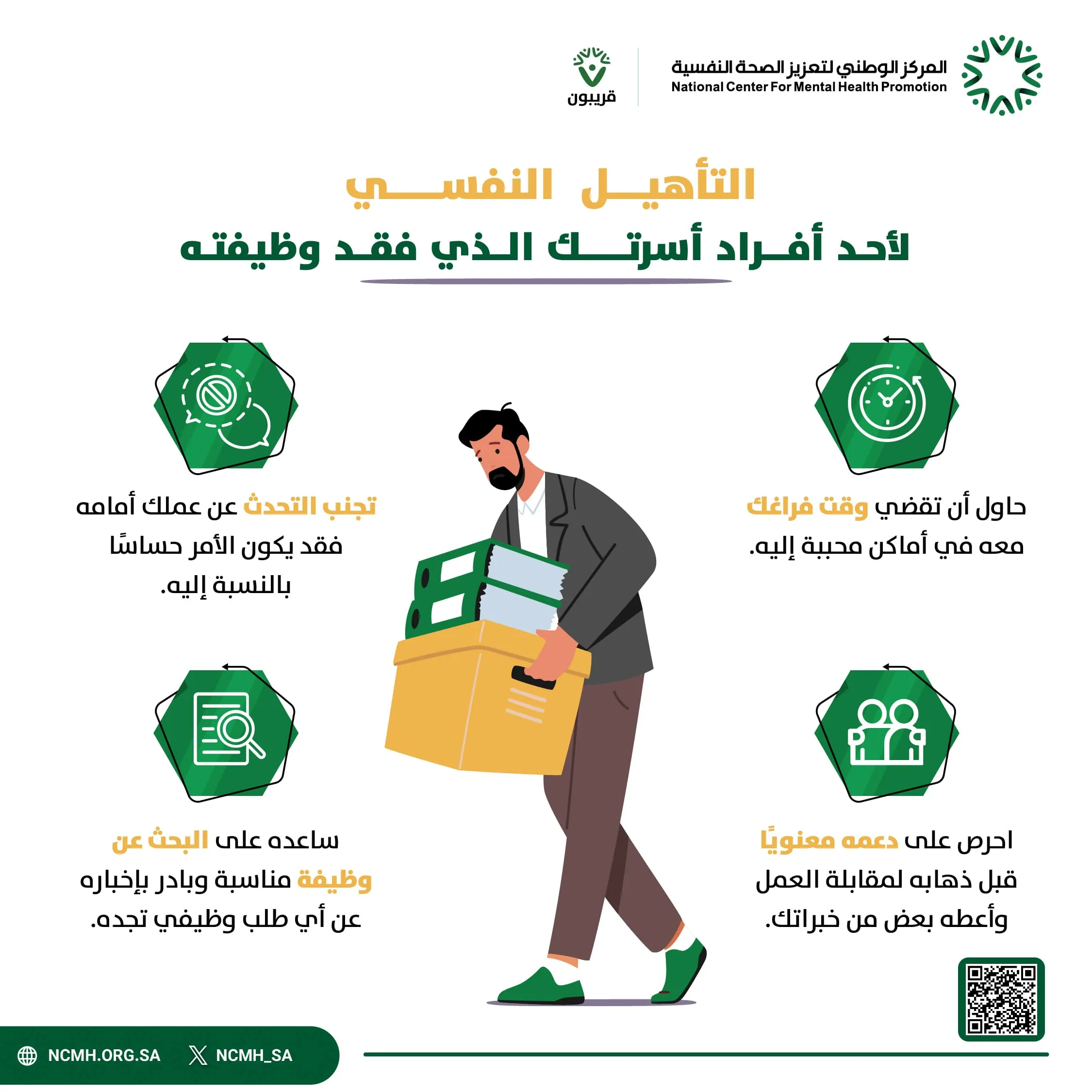 التأهيل النفسي لأحد أفراد أسرتك الذي فقد وظيفته